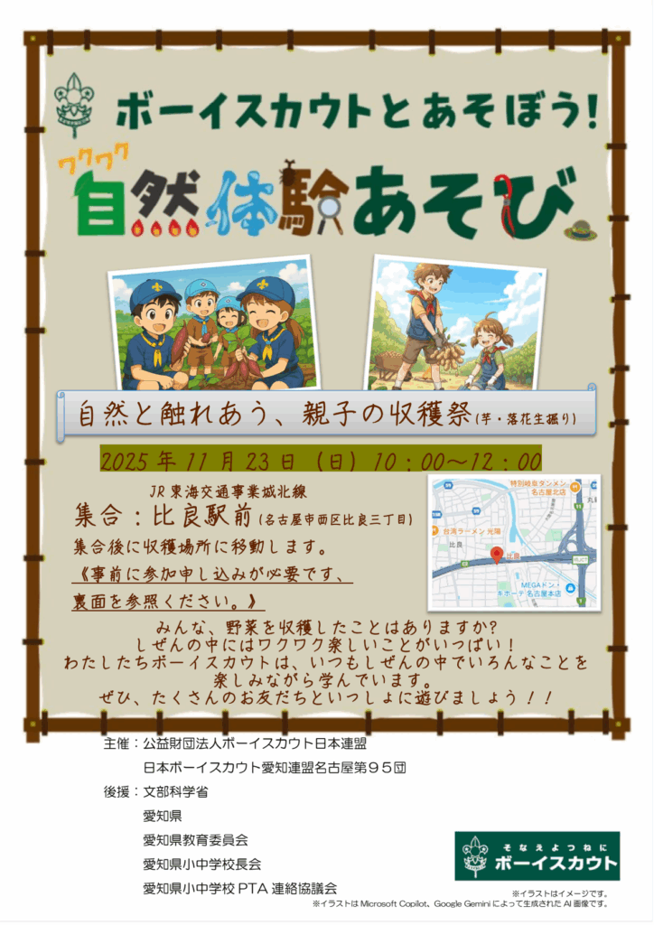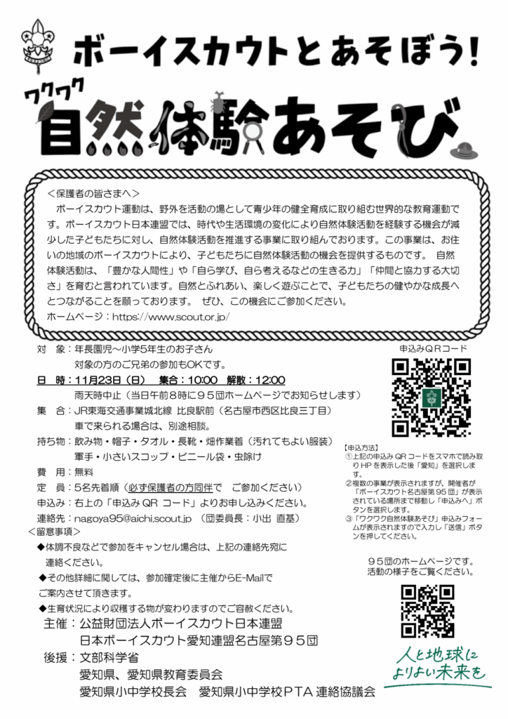 - 下記の「ワクワク自然体験あそび」からHPを表示した後「愛知」を選択します。